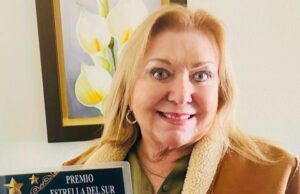 Luisa Cámere, muestra el premio: Estrella del Sur de Uruguay al mundo (2023).