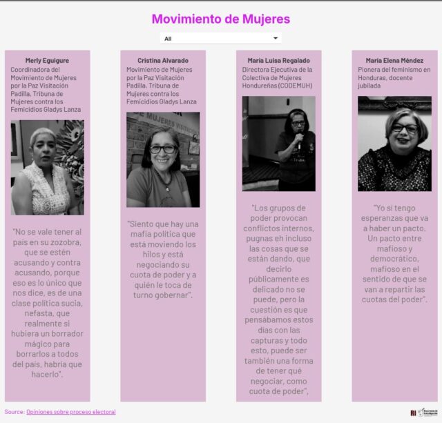 Tegucigalpa, Honduras | Reporteros de Investigación. El movimiento de mujeres de Honduras hace permanente análisis sobre las coyunturas políticas. Las mujeres observan la realidad y recopilan hechos y testimonios en todo el país. Así es como han descubierto que hay pactos de poder entre un pequeño grupo de hombres que controlan la política en...