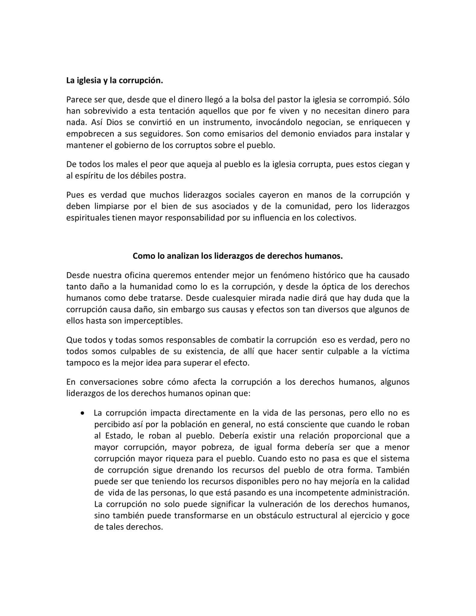 Derechos humanos y la lucha contra la corrupción
