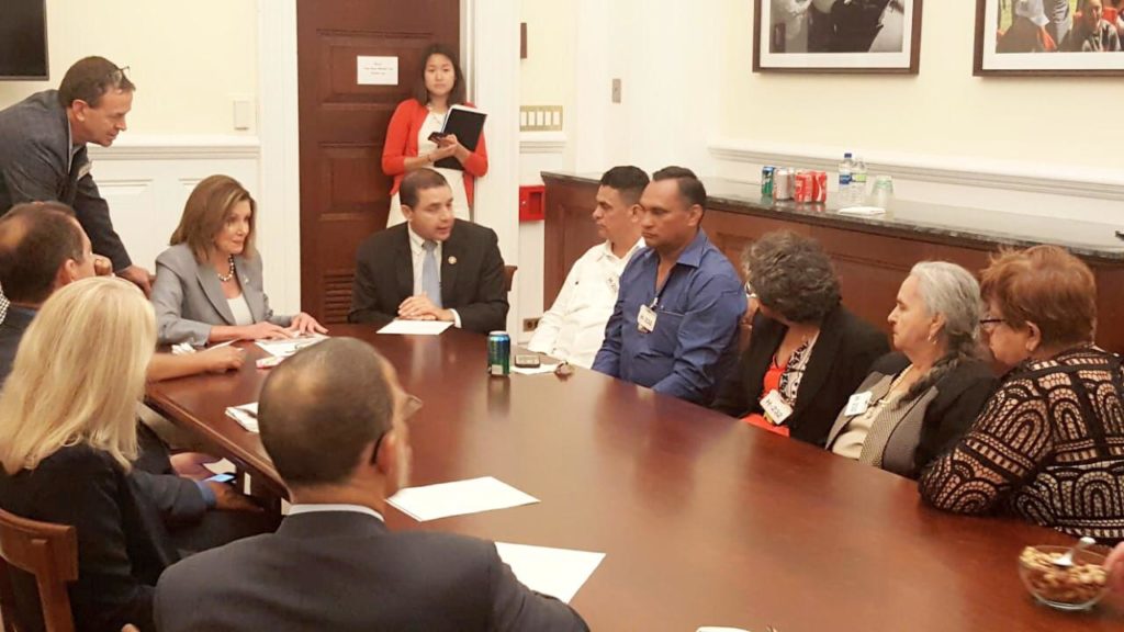 Kurt Alan Ver Beek, Presidente de la Junta Directiva de la Asociación para una Sociedad más Justa (ASJ), junto a Nancy Pelosi, Presidenta de la Cámara de Representantes de los Estados Unidos de América, durante la reunión sostenida entre familiares de la ambientalista indígena Berta Cáceres, y congresistas norteamericanos, en Washington DC