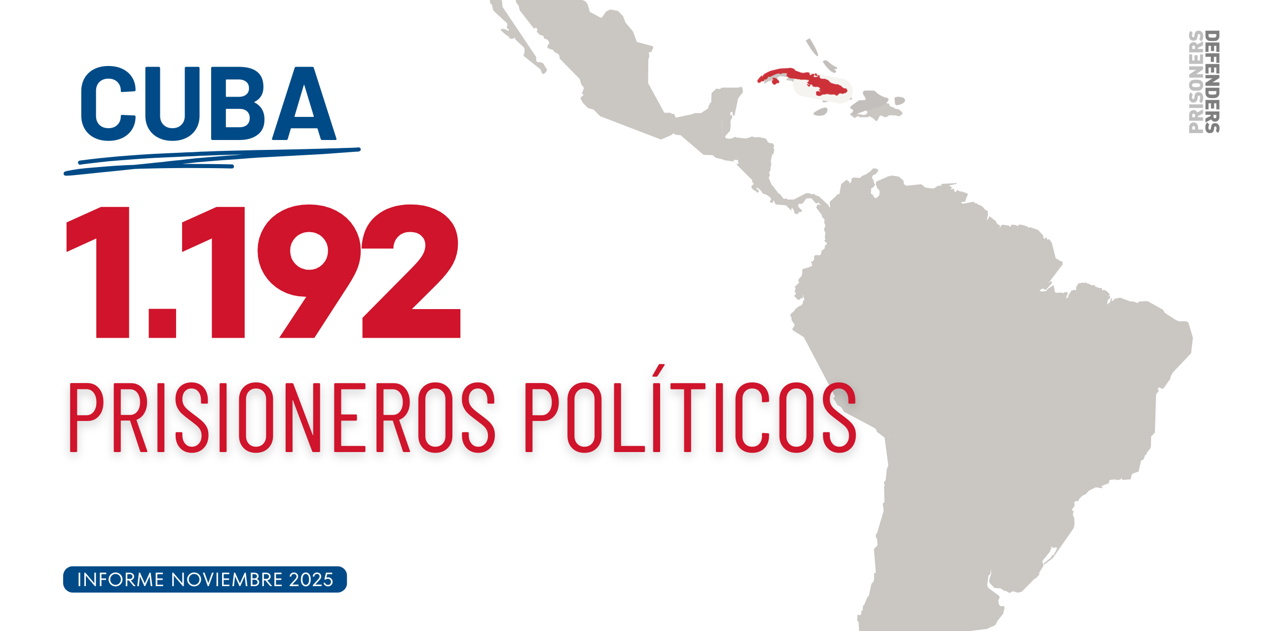 En noviembre de 2025, la lista oficial de Prisoners Defenders ha incorporado 19 nuevos presos políticos para un total de 1.192 prisioneros políticos, una actualización que confirma que la represión en Cuba sigue en aumento como mecanismo sostenido del régimen para ocultar el océano de crisis política, social, sanitaria, y la desesperación de la ciudadanía, y que reprime cualquier expresión de malestar social, crítica pública o ejercicio pacífico de derechos. Las nuevas detenciones recogen un patrón recurrente: ausencia de tutela judicial, desaparición forzada, incomunicación, con la inexistencia de información sobre el paradero de los detenidos, el uso de tipos penales vagos y amplios, como desobediencia, desacato, desórdenes públicos, instigación a delinquir, e incluso figuras más graves y, todo ello como un método sistémico para sembrar el terror en la población por medio del ejemplo con el fin de erradicar conductas ciudadanas como las meras opiniones en redes sociales, las expresiones verbales en espacios públicos, o las protestas vinculadas a la crisis cotidiana (apagones, carencias, mala gestión gubernamental). Siendo claro este patrón, por tanto, Cuba es un país donde se ejercita el terrorismo de Estado.