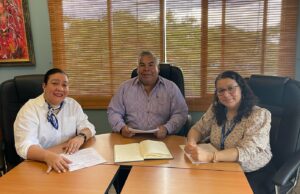 La abogada Emma Murillo, vecina de Santa Lucía, el alcalde Julio Avilés y Sulay Esinal, la secretaria municipal del municipio.